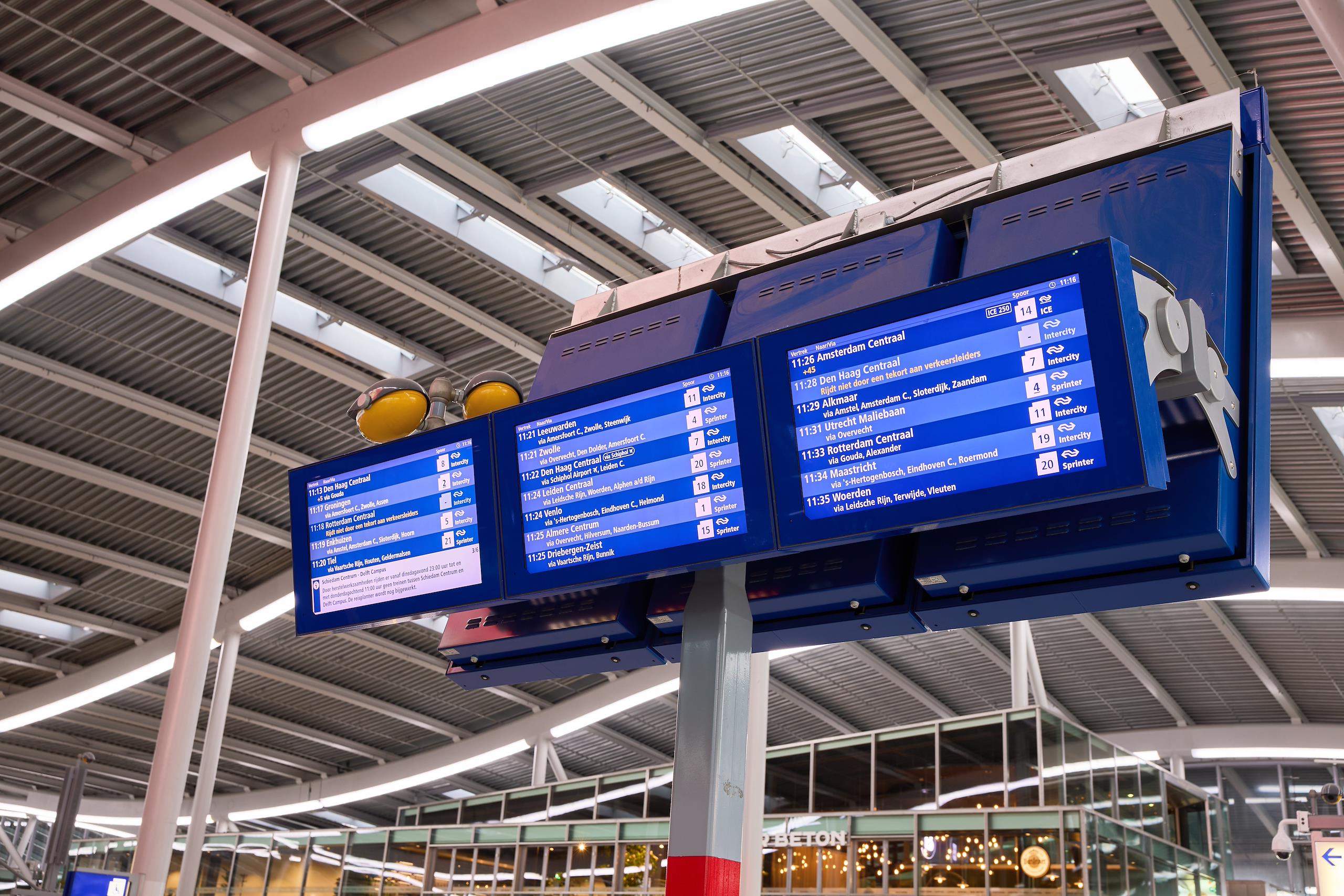 In 2025, we introduced dark mode on the information screens at our stations. This means that the screens are often more energy-efficient and more legible: it is easier on the eyes. Making our digital tools a lot more user-friendly and sustainable.