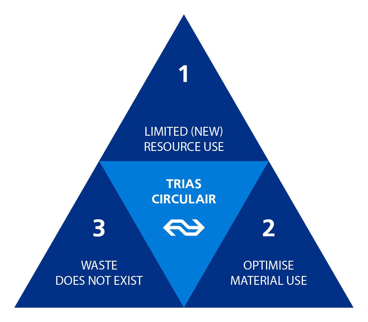 For NS, circular operations mean minimising the use of new and existing primary raw materials, maximising the use and reuse of our materials and not creating any waste or residual waste. We follow this approach in our offices, workshops, stations and trains. To achieve this, we focus on the NS ‘Trias Circular’, which is central to our circularity policy.